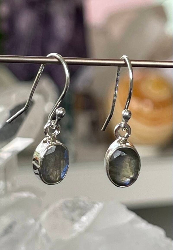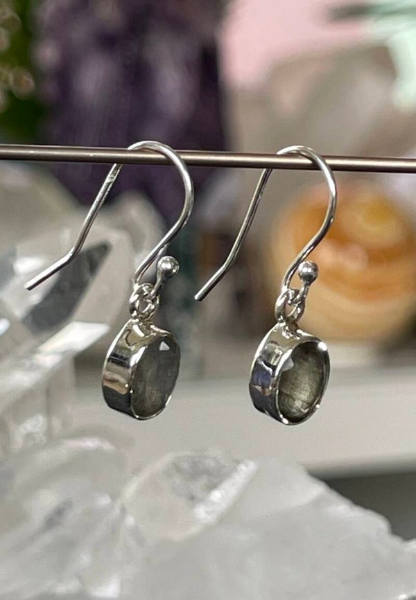 Labradoriet oorbellen facet geslepen ovaal, klein