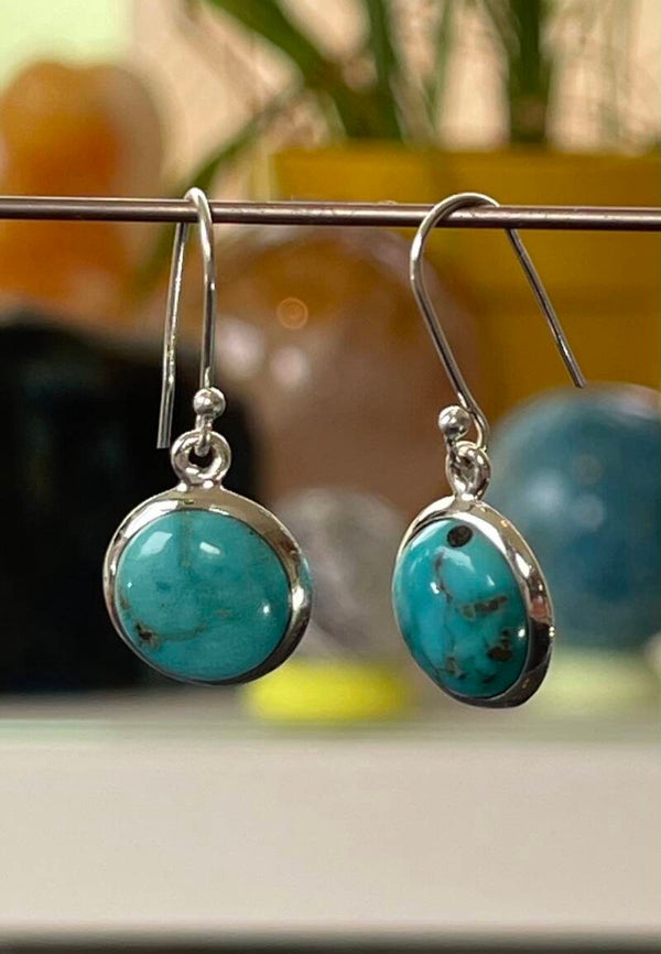 Zilveren oorbellen met Turkoois edelstenen uit Tibet, cabochon rond