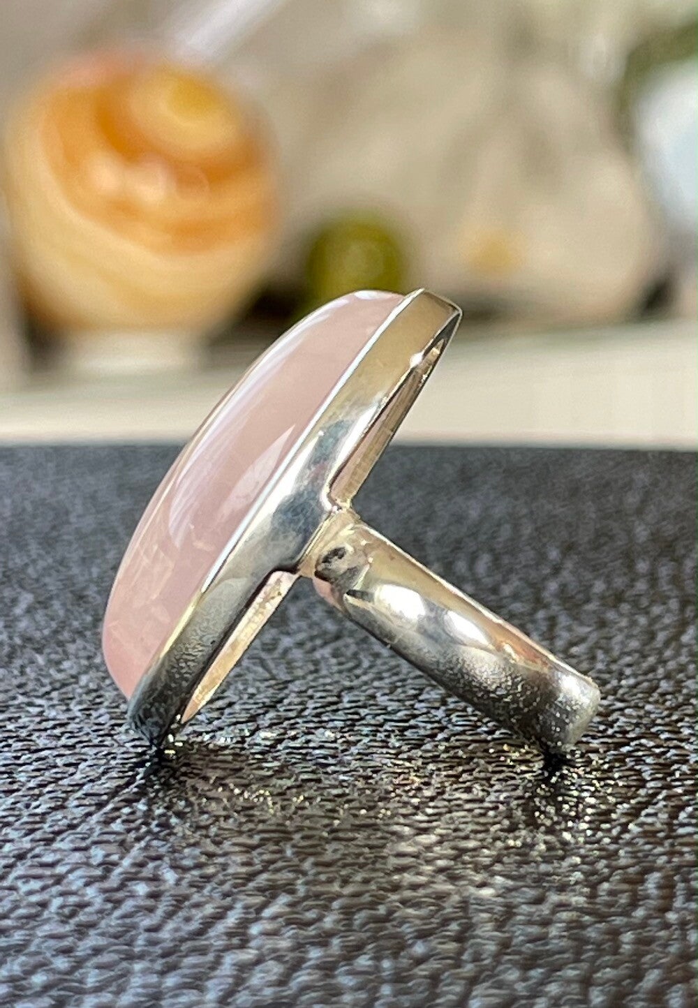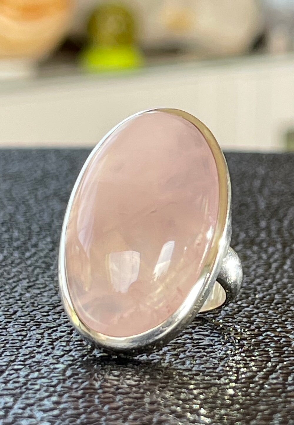 Bijzondere verstelbare zilveren ring met Rozenkwarts edelsteen cabochon ovaal