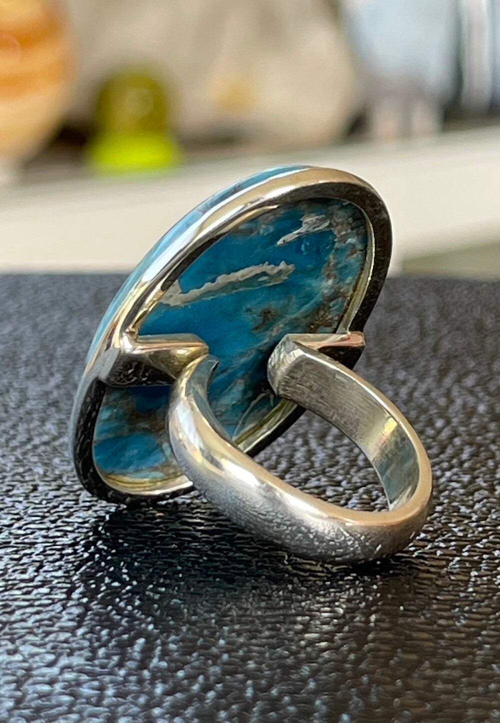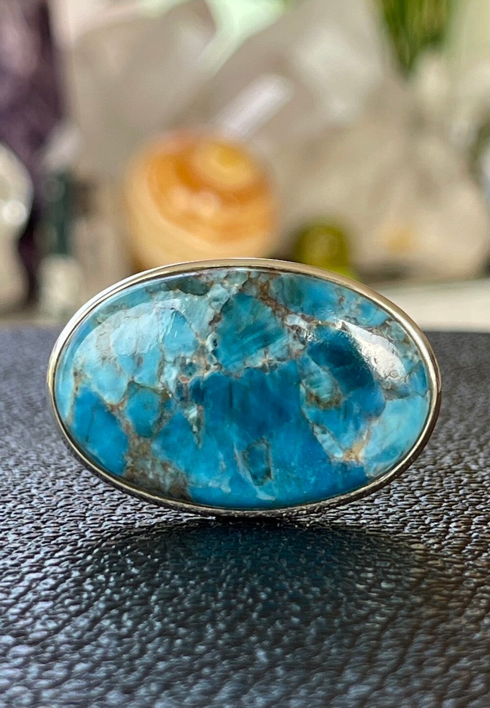 Bijzondere verstelbare zilveren ring met Apatiet edelsteen cabochon ovaal