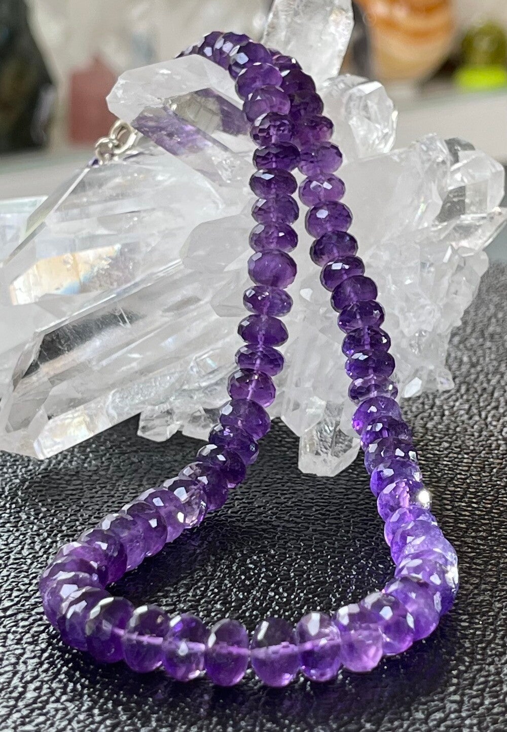 Ketting met Amethist edelstenen facet geslepen en zilveren sluiting