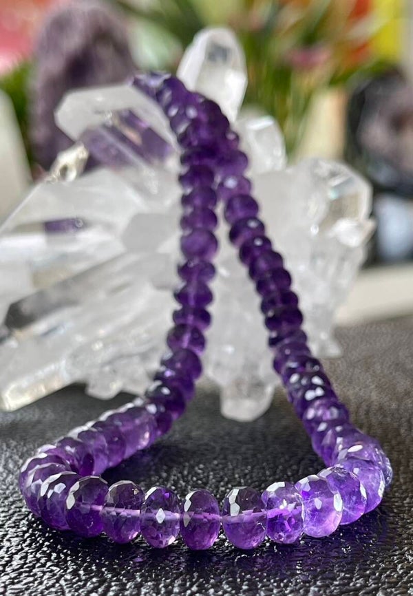 Amethist heeft een beschermende en zuiverende werking. De steen bevordert zelfinzicht en helpt je om eerlijk te zijn naar jezelf toe over gedrag dat schadelijk kan zijn en niet in dienst is van je hoogste zelf. Het helpt je bijvoorbeeld om verslavingen te onderkennen en aan te pakken.