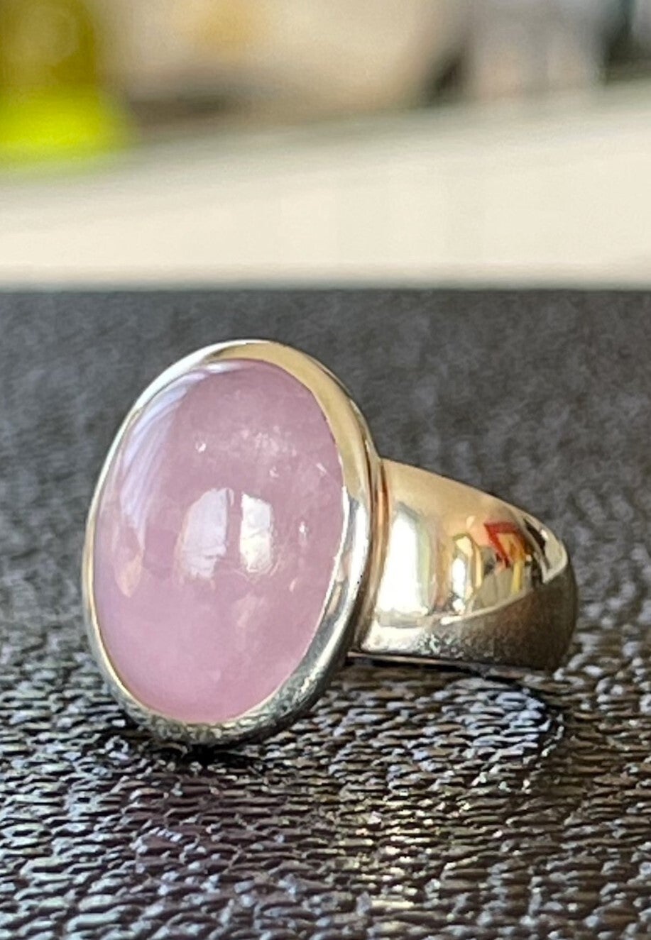 Zilveren ring met Kunziet edelsteen cabochon ovaal