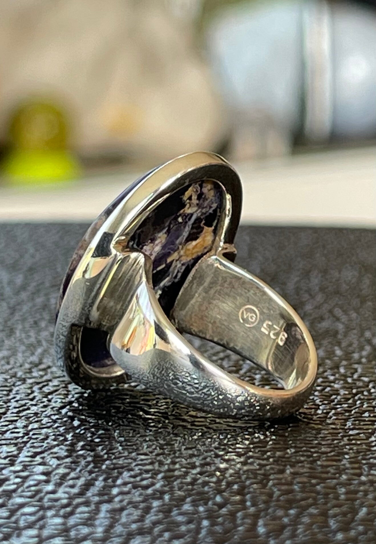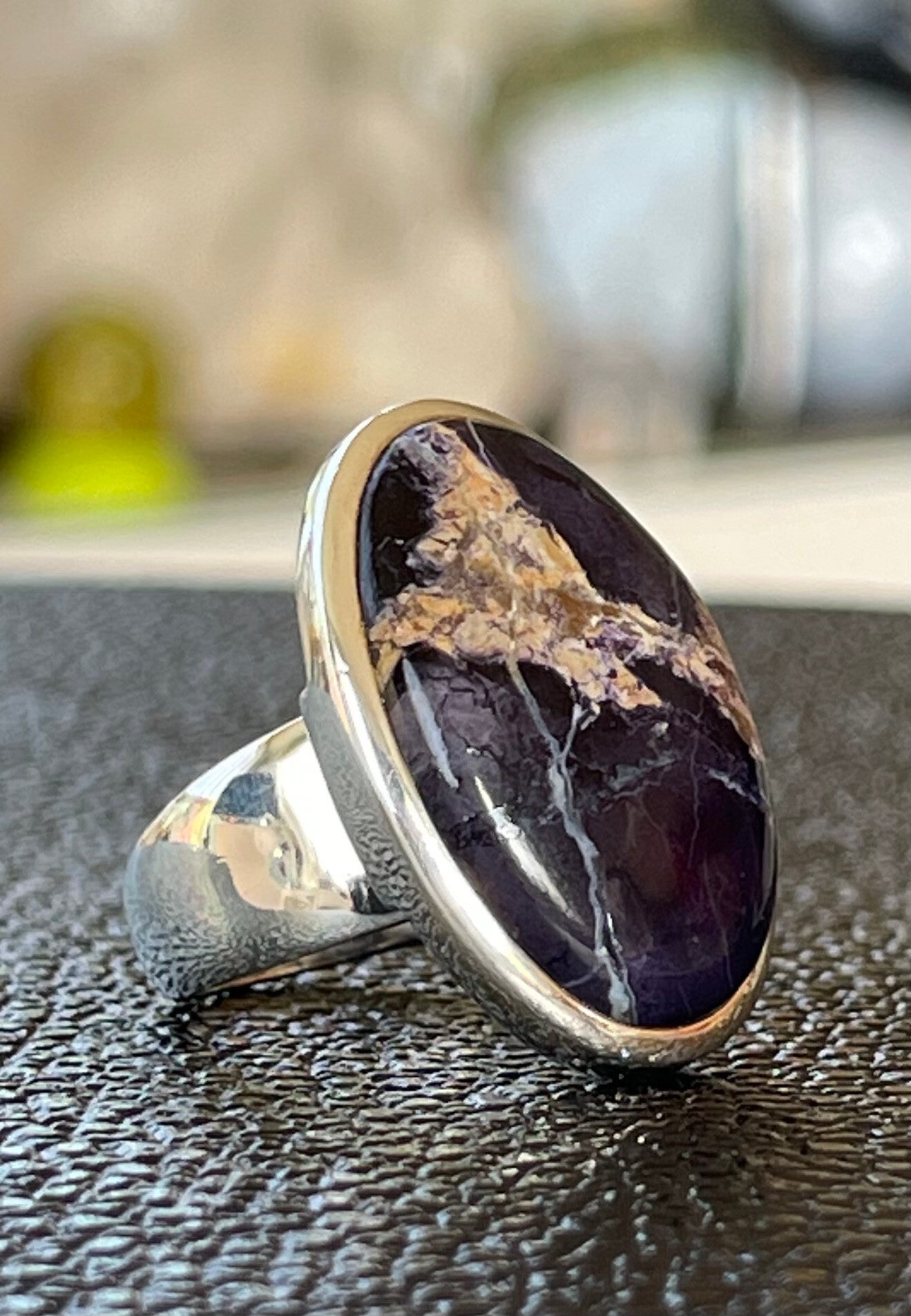 Zilveren ring met Bertrandiet of Tiffany Stone edelsteen cabochon ovaal