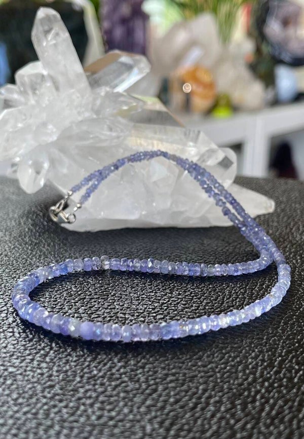 Mooie ketting met Tanzaniet edelstenen facet geslepen en zilveren sluiting