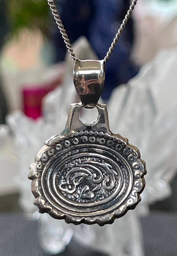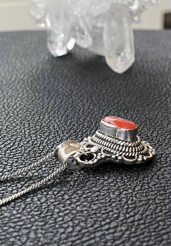 Zilveren hangertje met echte Koraal edelsteen uit Tibet, cabochon, medium, zonder ketting