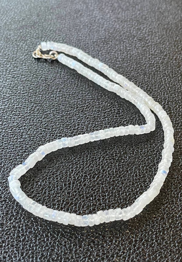 Ketting met Regenboog Maansteen cabochon met zilveren sluiting