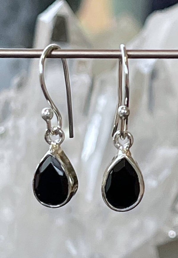 Zilveren oorbellen met zwarte Onyx edelstenen facet geslepen druppel, klein