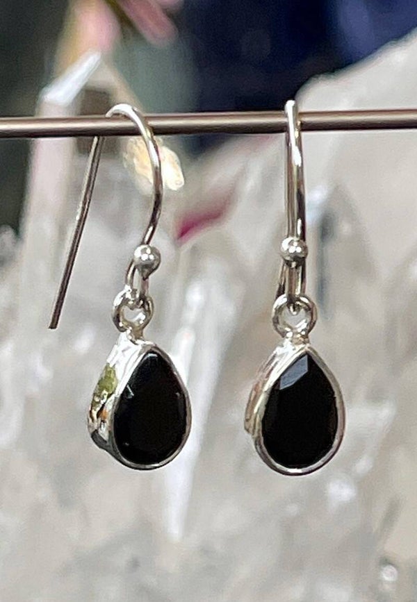 Zwarte Onyx oorbellen facet geslepen druppel, klein