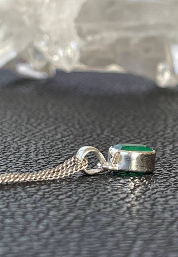 Zilveren hangertje met Groene Onyx edelsteen facet geslepen ovaal, klein, zonder ketting