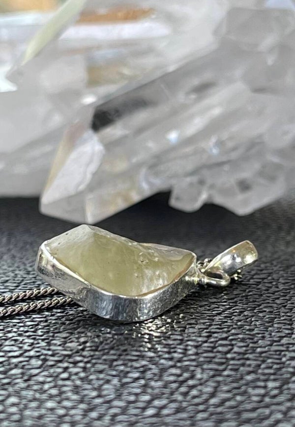 Zilveren hangertje met Lybisch goud tektiet of Woestijnglas edelsteen uit Egypte, ruwe free form, zonder ketting, medium