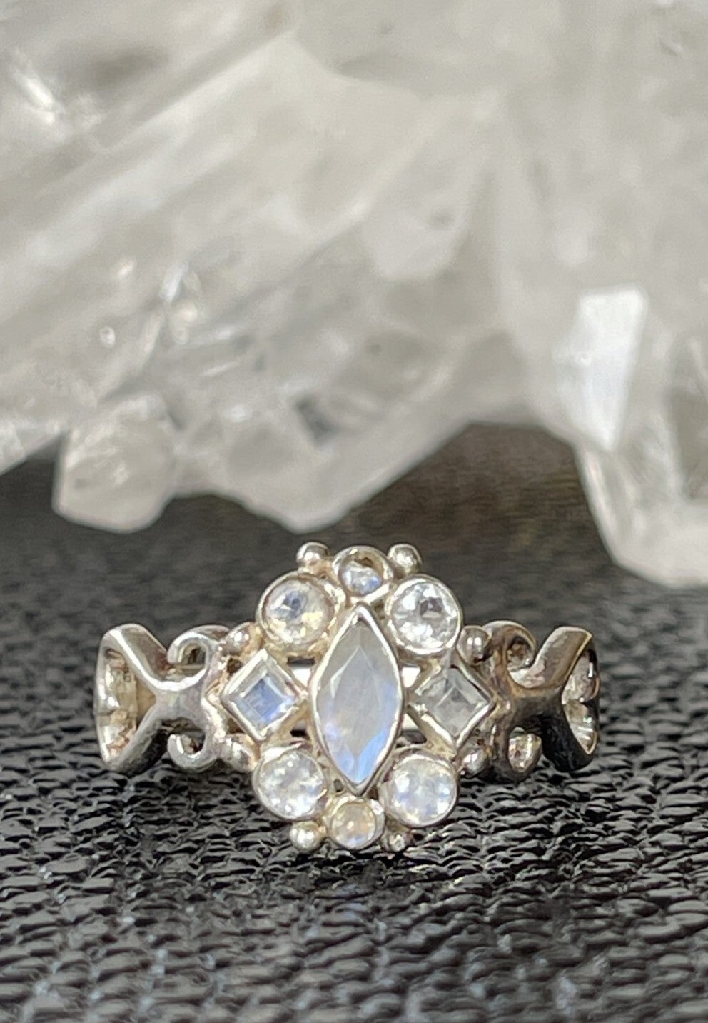 Zilveren ring met Regenboog Maansteen edelstenen facet geslepen