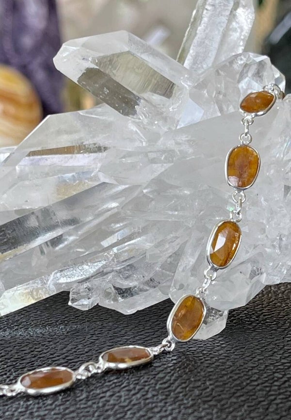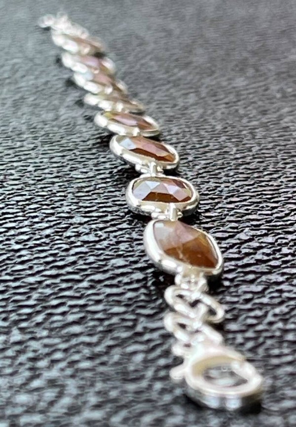 Zilveren armband met platte oranje Kyaniet edelstenen free form checker facet geslepen, verstelbaar naar kortere lengte
