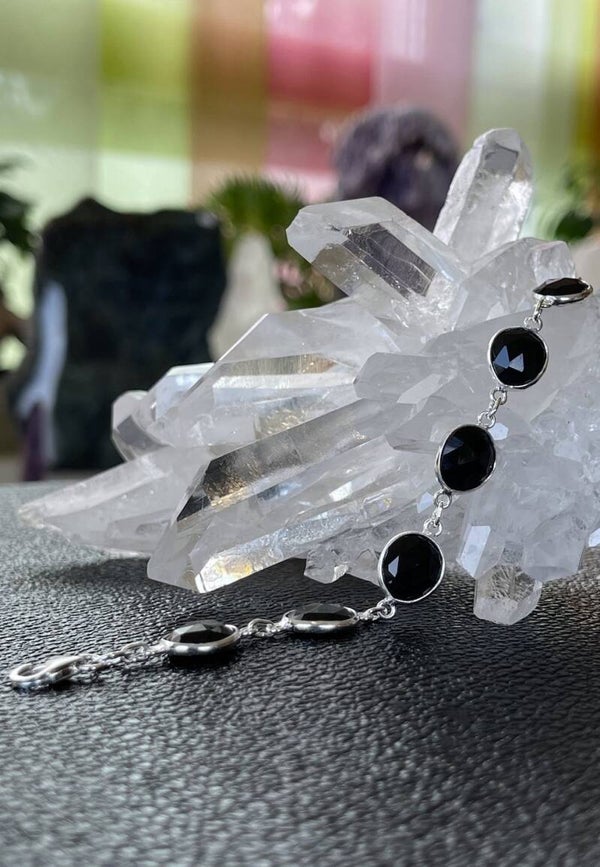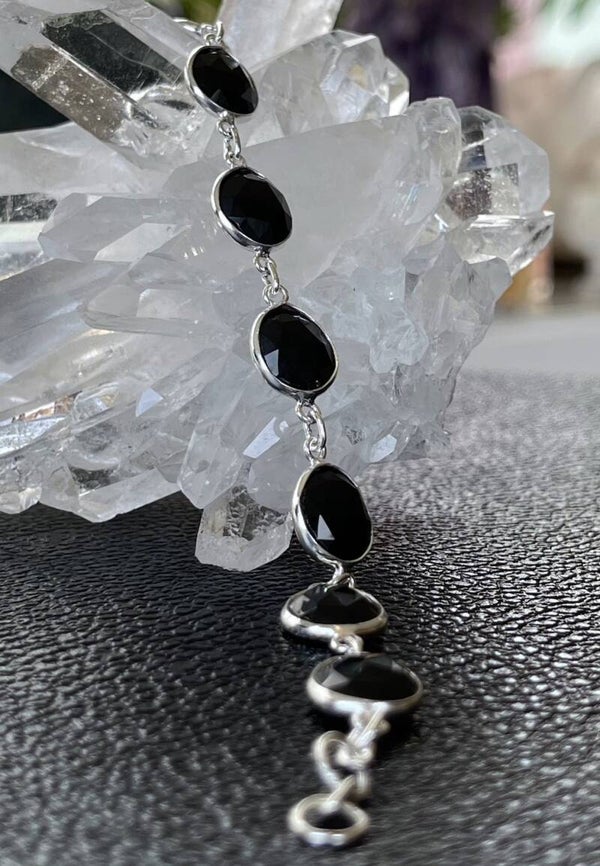 Zilveren armband met platte Onyx edelstenen free form checker facet geslepen, verstelbaar naar kortere lengte