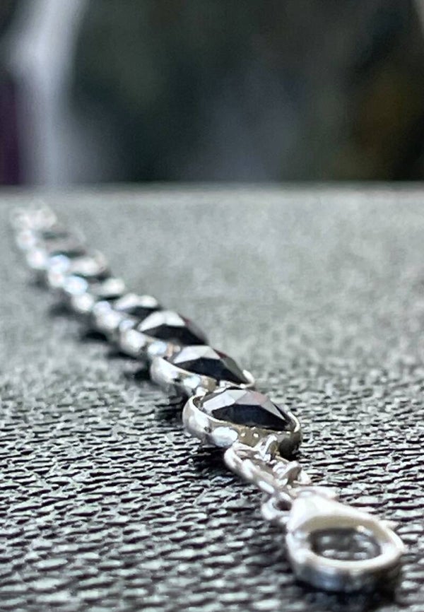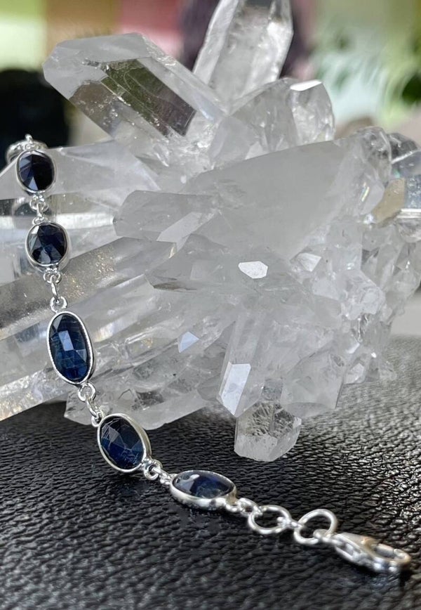 Zilveren armband met platte Kyaniet edelstenen free form checker facet geslepen, verstelbaar naar kortere lengte