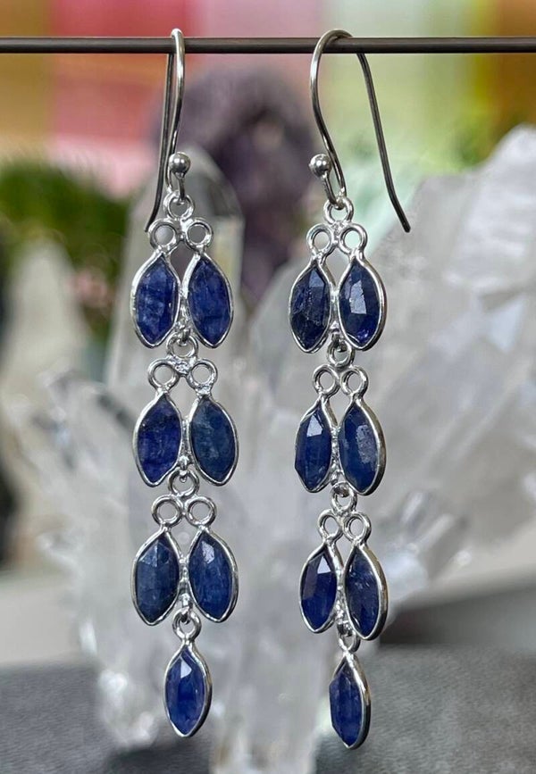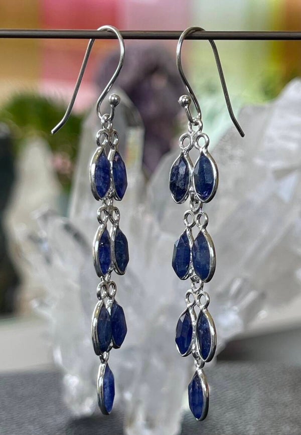 Lapis Lazuli oorbellen facet geslepen marquise vorm, lang