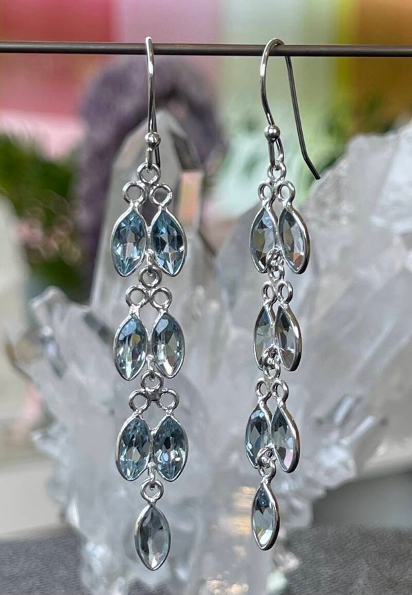 Blauw Topaas oorbellen facet geslepen marquise vorm, lang