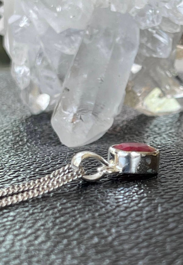 Zilveren hangertje met Robijn edelsteen facet geslepen ovaal, klein, zonder ketting