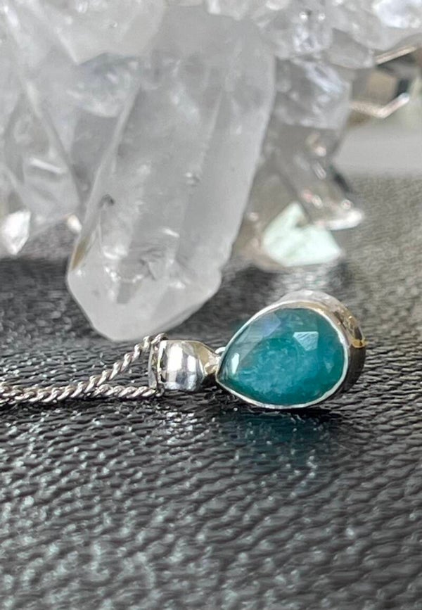 Zilveren hangertje met Smaragd edelsteen facet geslepen druppel, klein, zonder ketting