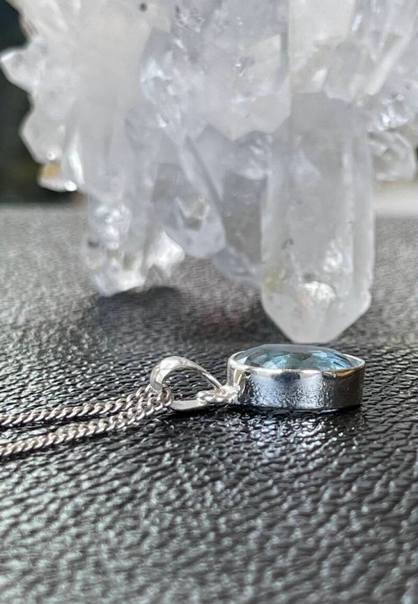 Blauwe Topaas hanger facet geslepen ovaal klein