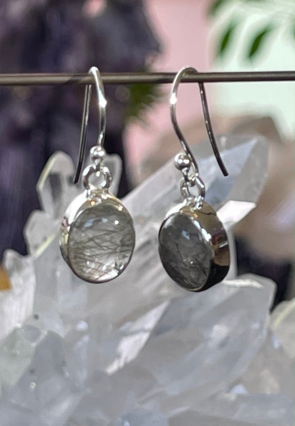 Zilveren oorbellen met Toermalijnkwarts edelstenen cabochon ovaal
