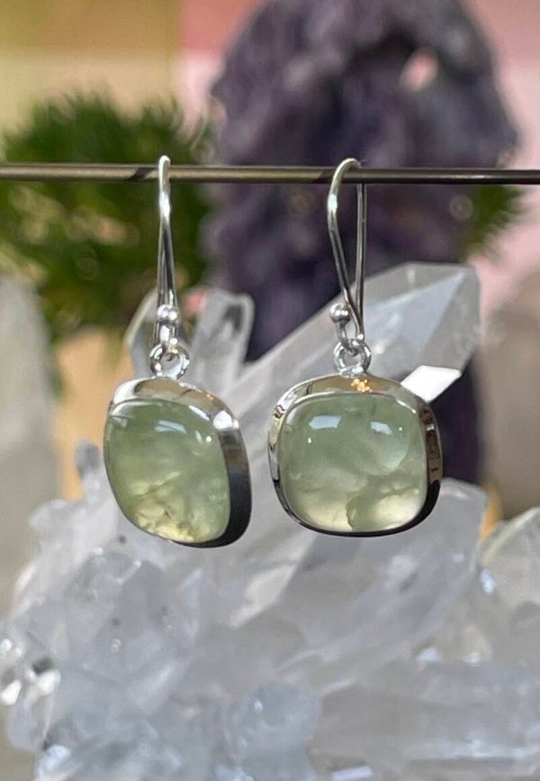 Zilveren oorbellen met Prehniet edelstenen cabochon rechthoek