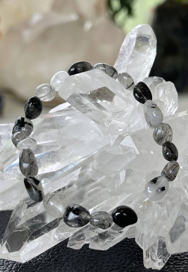 Toermalijnkwarts bestaat uit Zwarte Toermalijn in Bergkristal en verenigt de eigenschappen van deze twee steensoorten in zich. Zo vertoont de steen de beschermende en aardende werking van Toermalijn in combinatie met de zuiverende en reinigende werking van Bergkristal. Daarnaast versterkt Bergkristal ook nog eens de werking van de Toermalijn die erin zit.