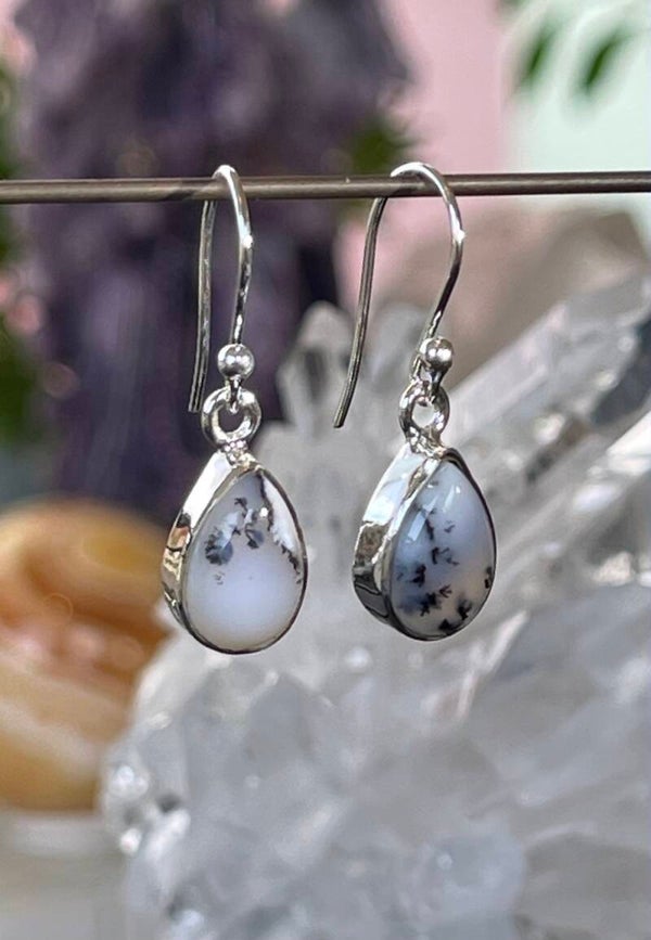 Zilveren oorbellen met Dendriet Agaat edelstenen cabochon druppel