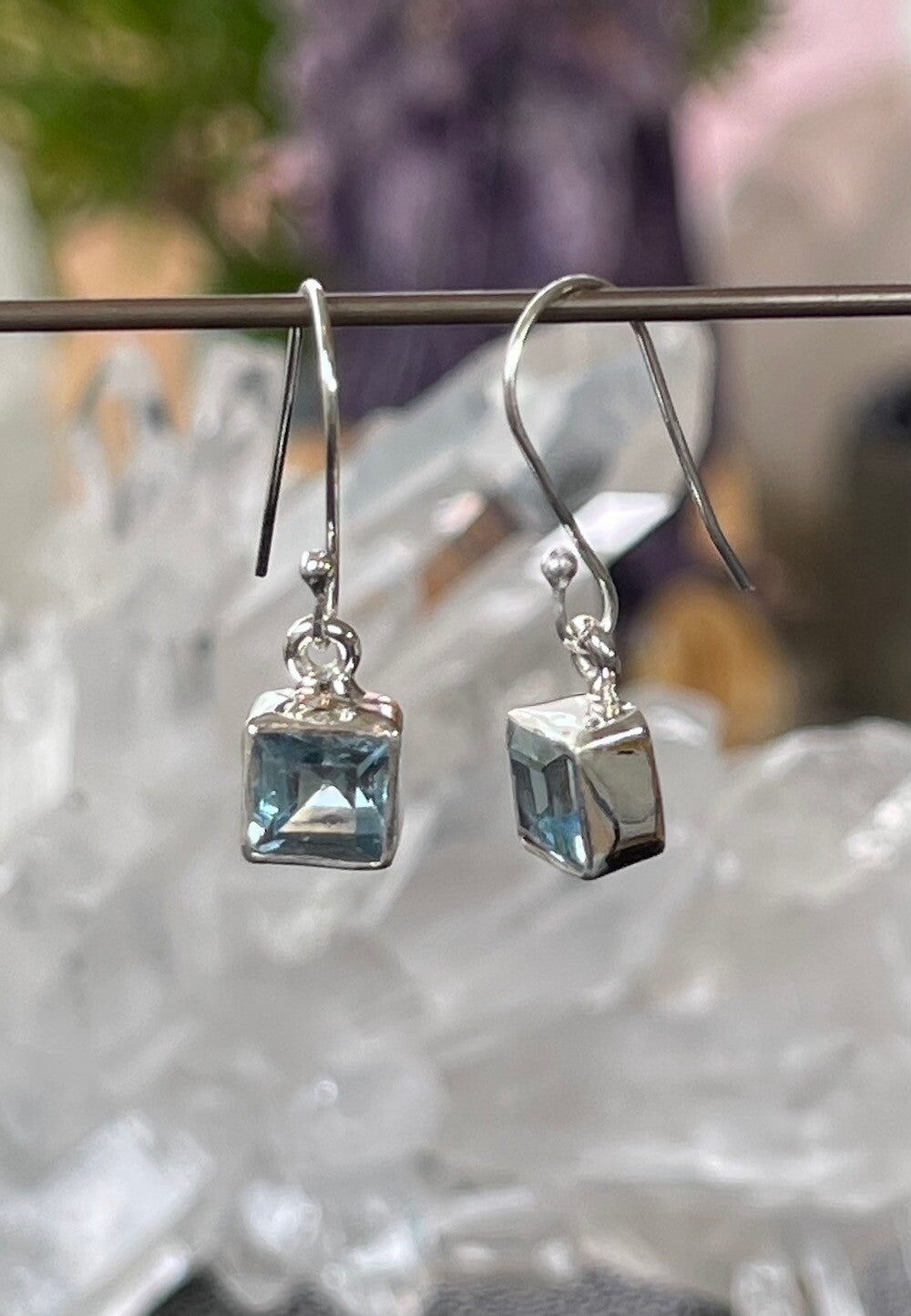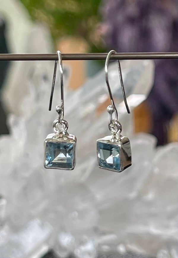 Blauwe Topaas oorbellen facet geslepen vierkant, klein