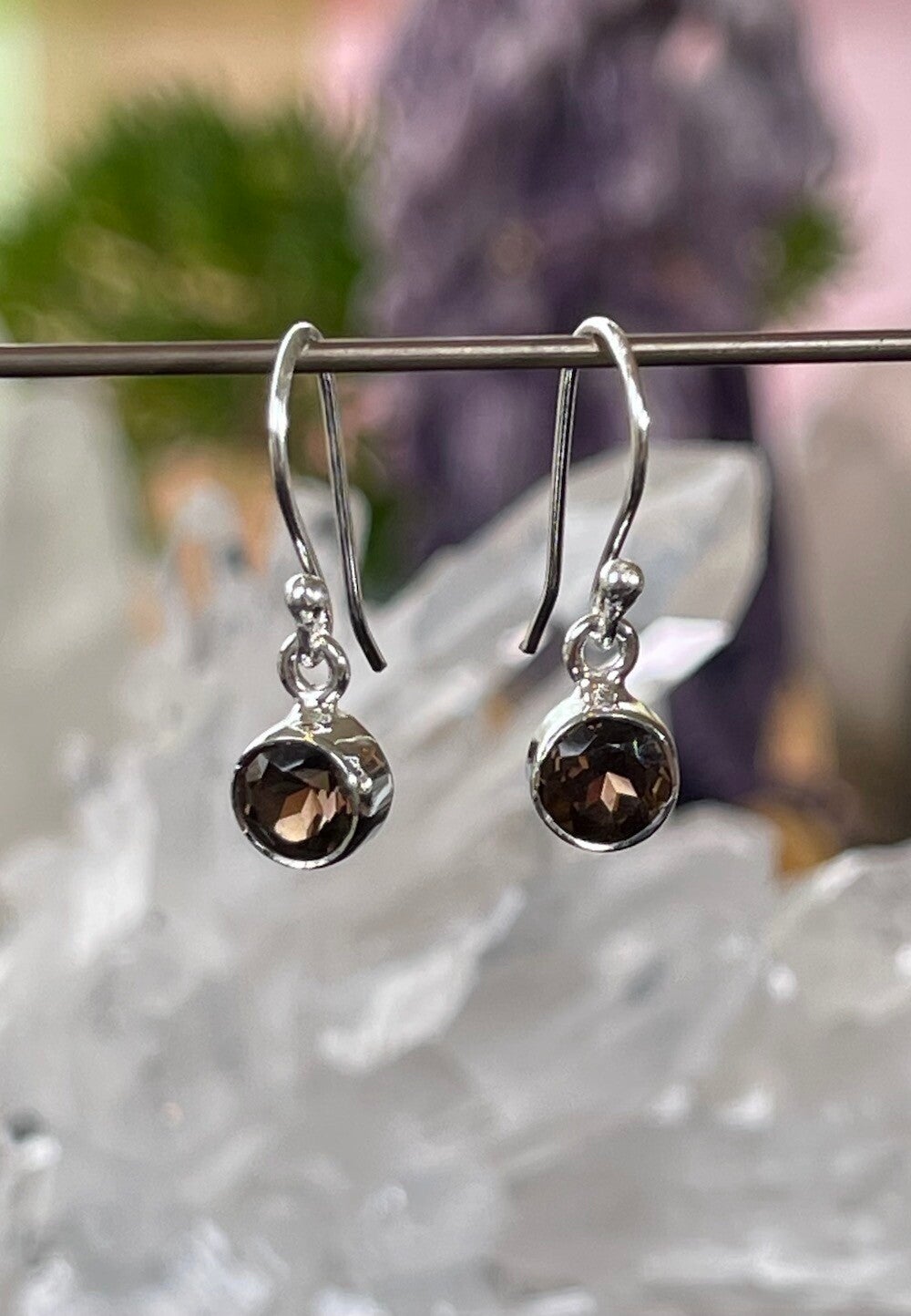 Zilveren oorbellen met Rookkwarts edelstenen facet geslepen rond, klein