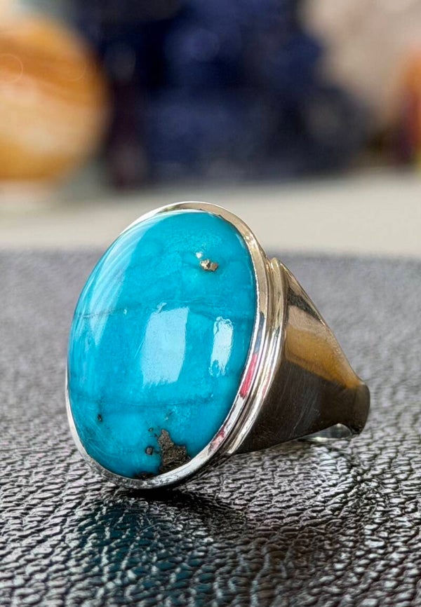 Zilveren ring met Turkoois en koper uit Iran edelsteen cabochon ovaal