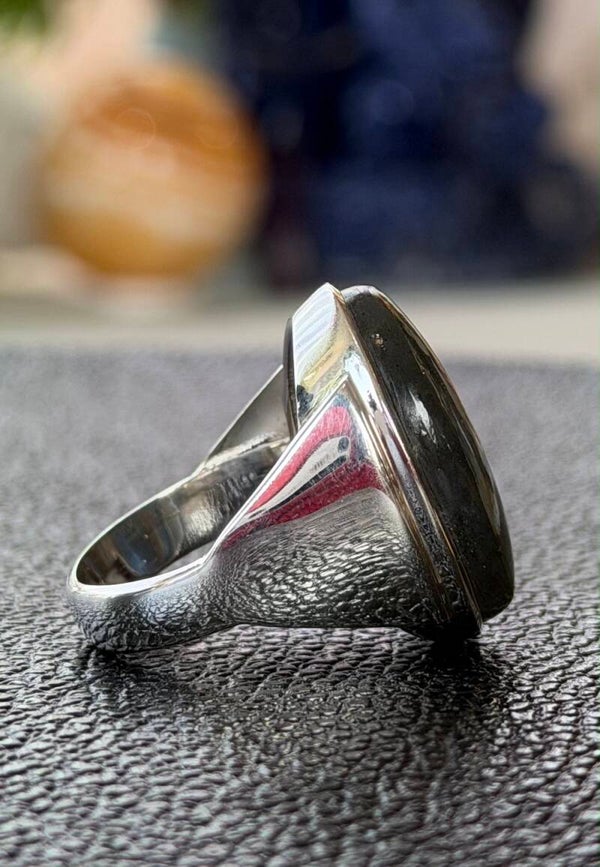 Zilveren ring met Labradoriet uit Madagaskar edelsteen cabochon ovaal
