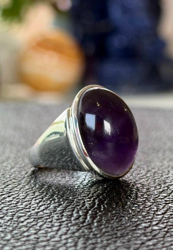 Zilveren ring met Amethist edelsteen cabochon ovaal