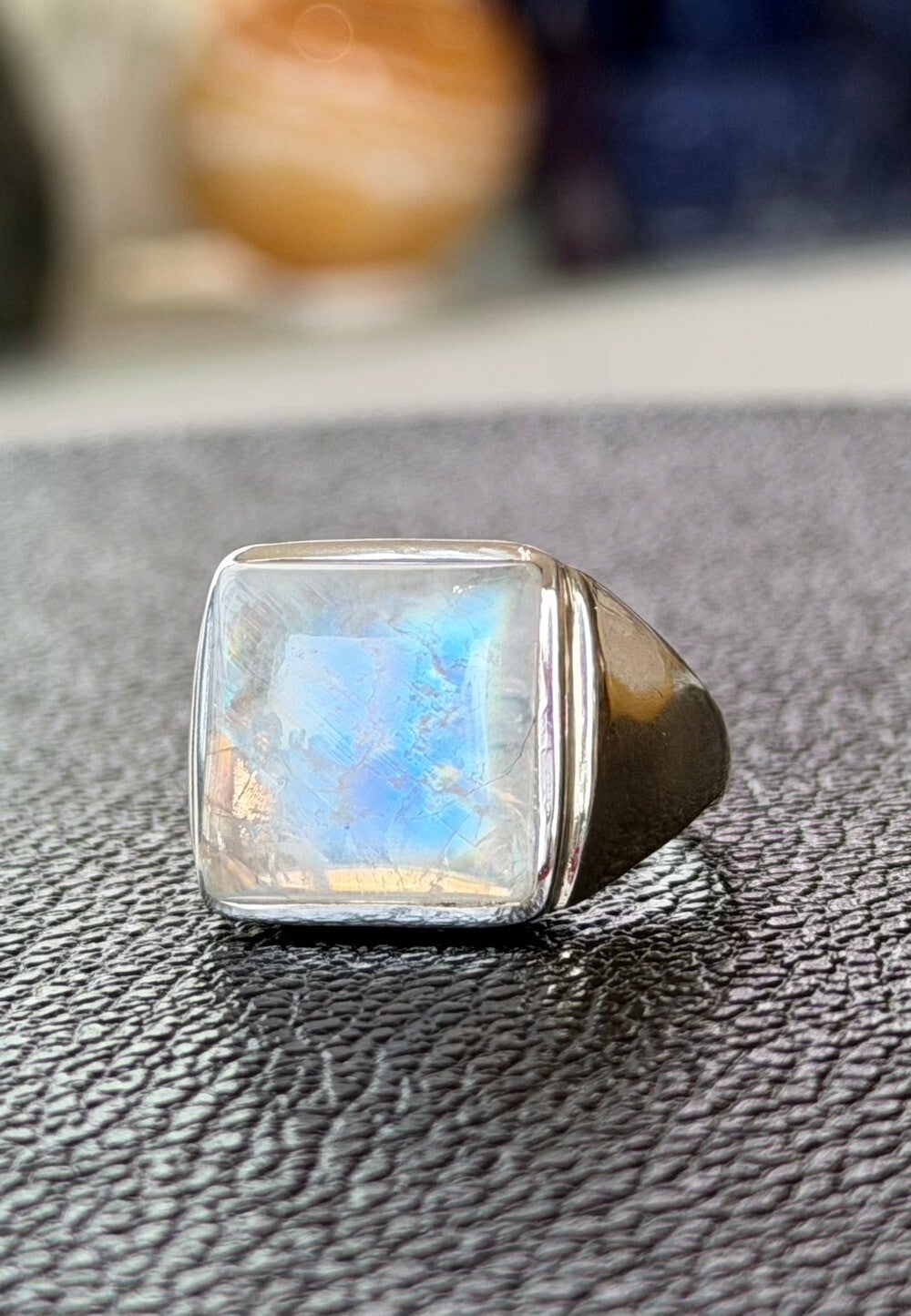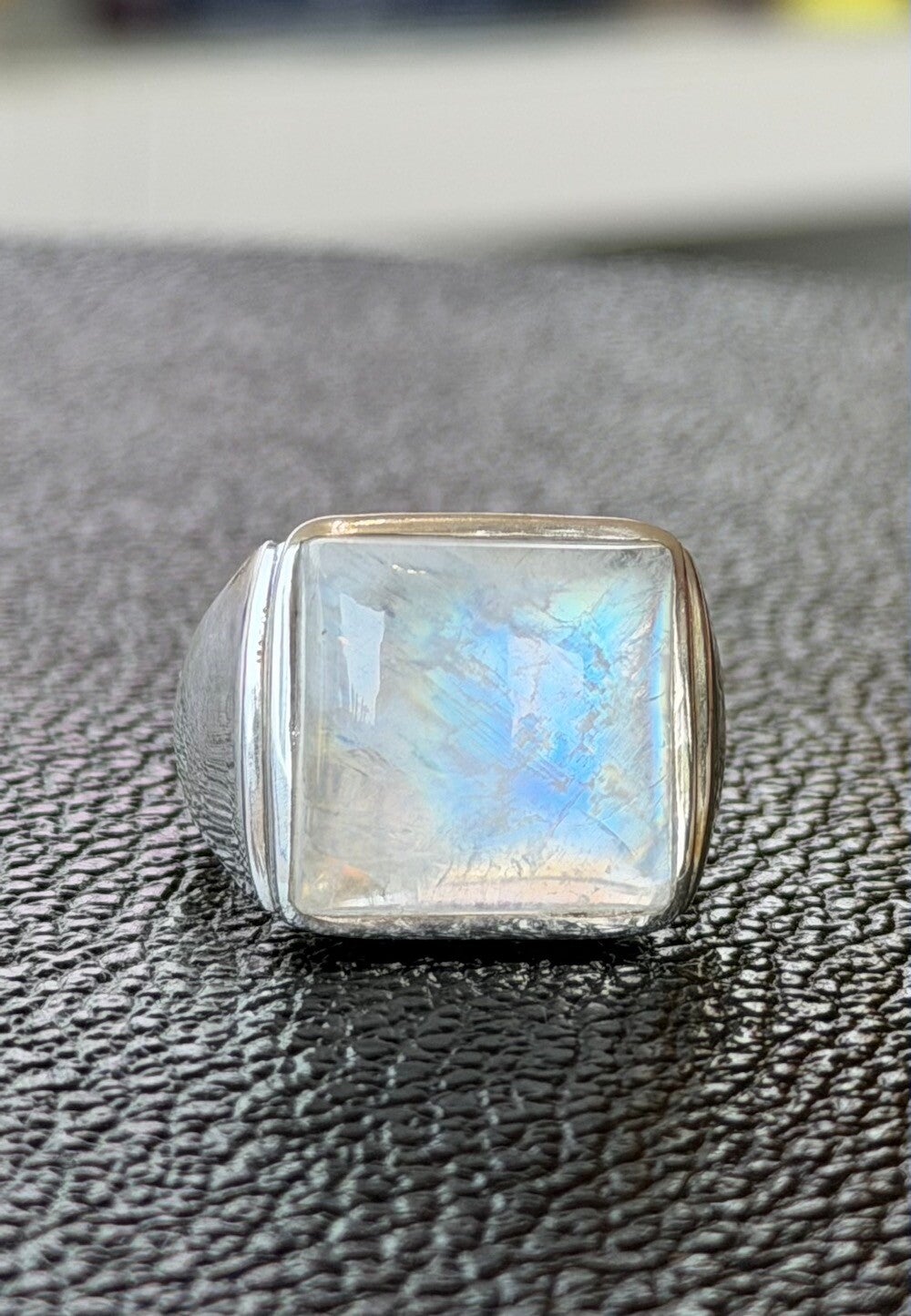 Zilveren ring met Regenboog Maansteen edelsteen cabochon rechthoek