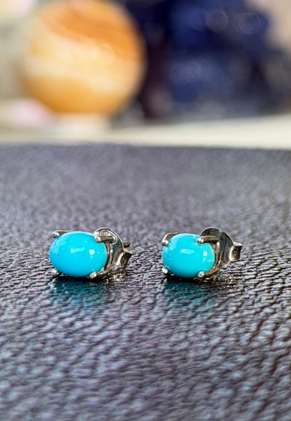 Turkoois oorknopjes cabochon ovaal, klein
