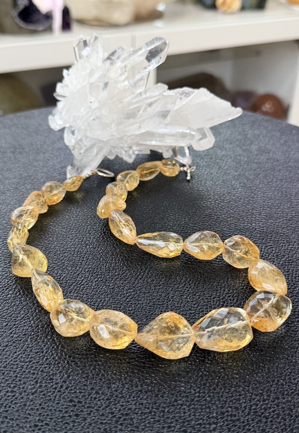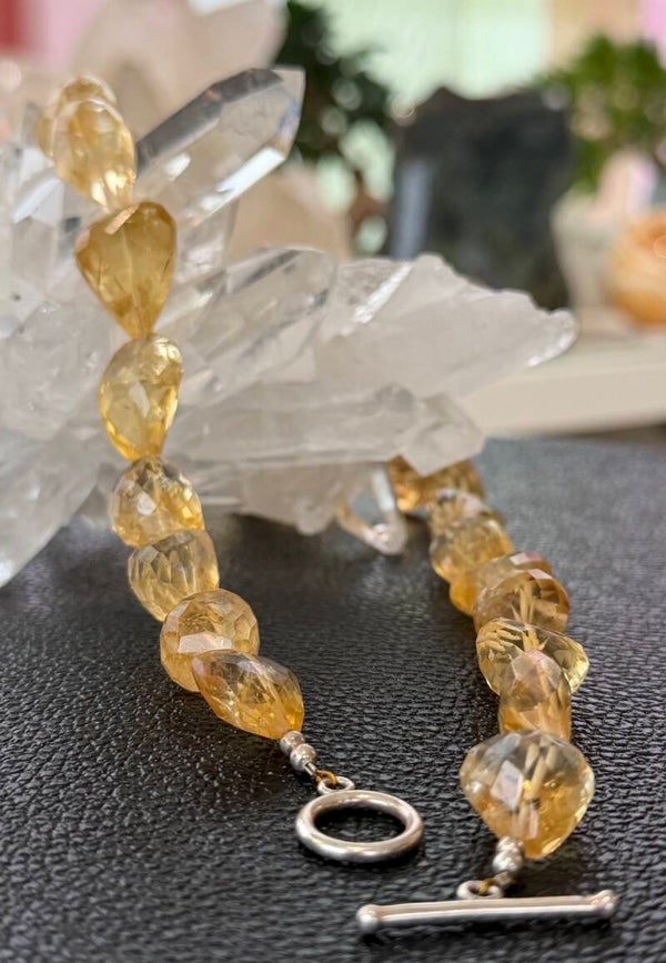 Ketting met Citrien edelstenen facet geslepen getrommelde tumble kralen met zilveren sluiting