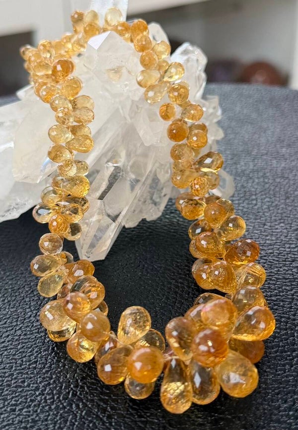 Ketting met Gouden Topaas edelstenen, heldere facet geslepen druppel kralen en zilveren sluiting