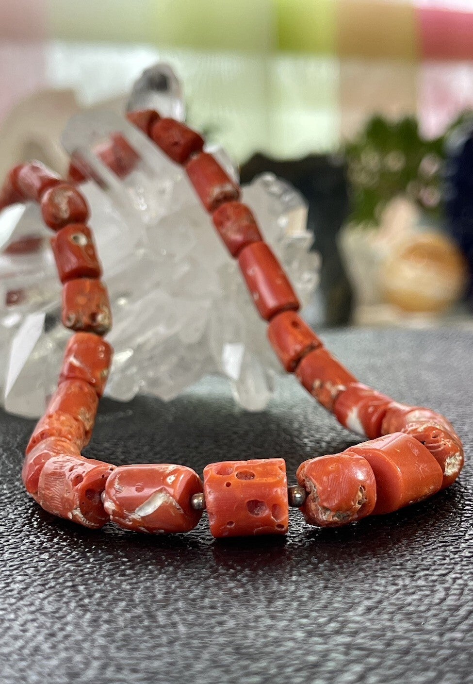 Koraal ketting cabochon ruw getrommeld