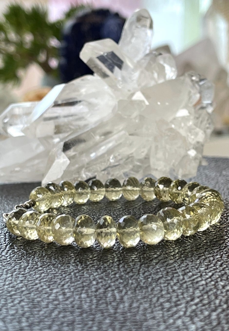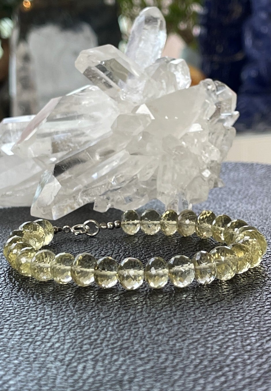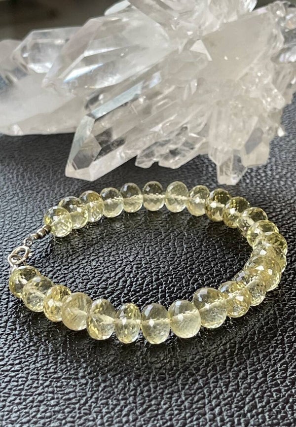 Armband met Lemon Kwarts edelstenen, ronde facet geslepen kralen met zilveren sluiting, mooie kwaliteit
