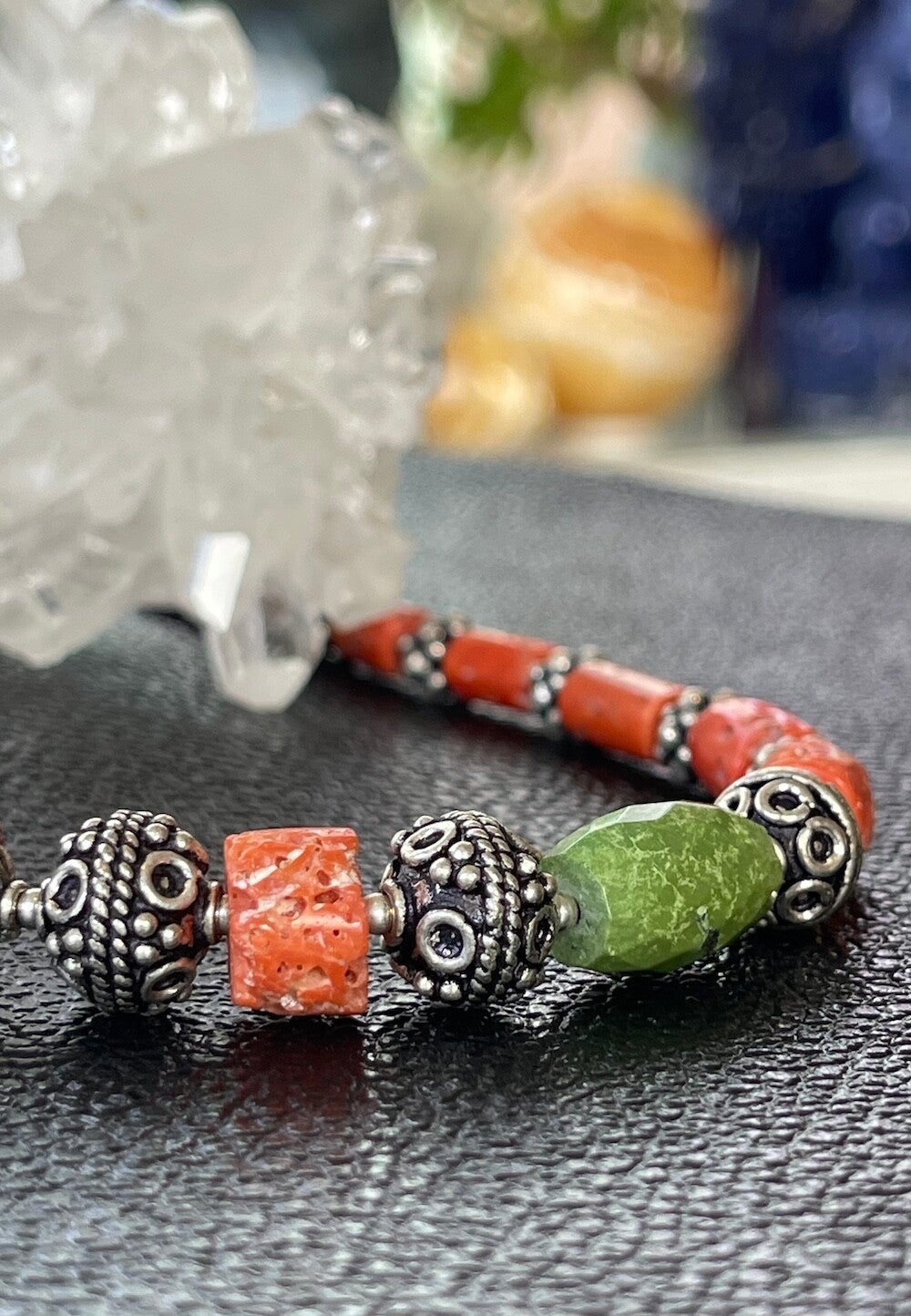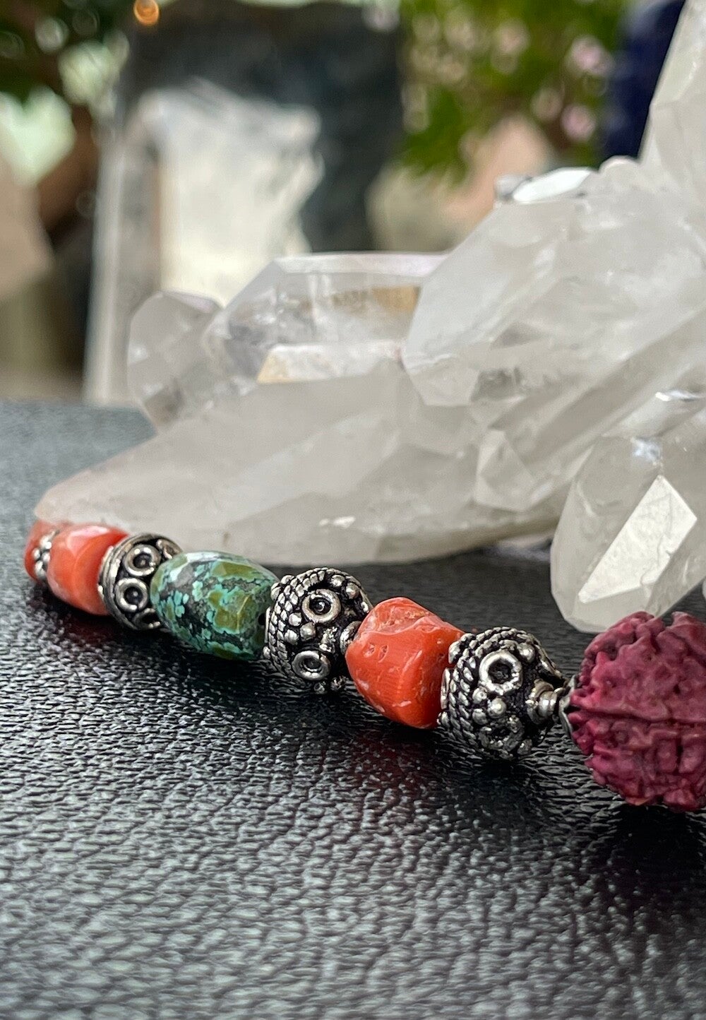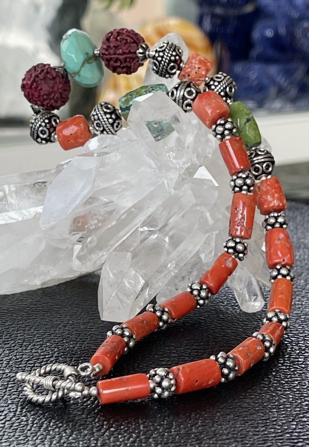 Koraal ketting met Turkoois en Rudraksha