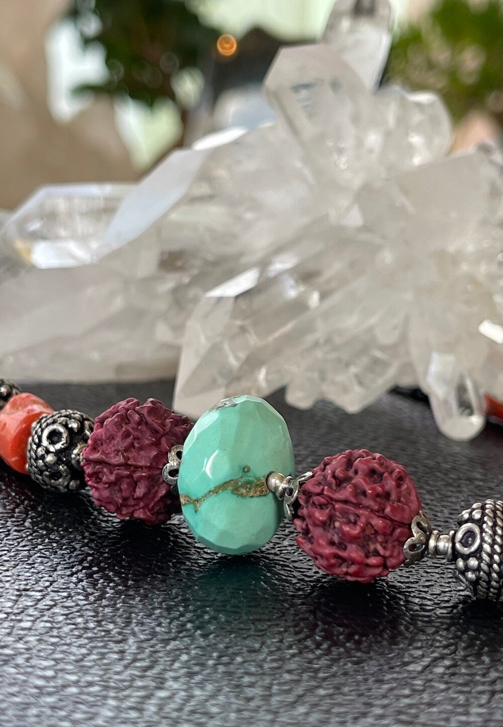 Koraal Turkoois Rudraksha ketting cabochon kralen