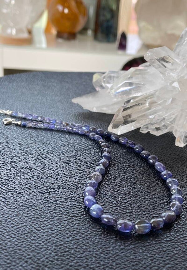 Ketting met Ioliet edelstenen cabochon kralen en zilveren sluiting