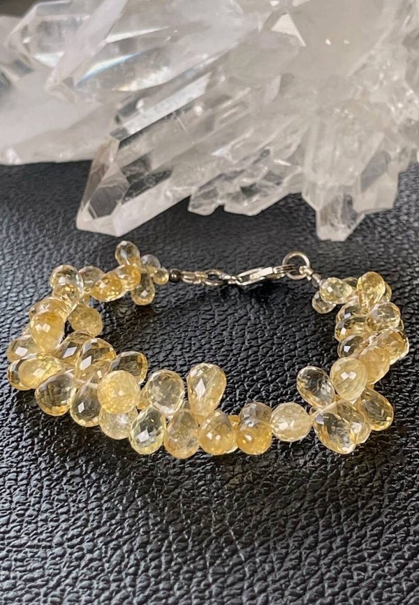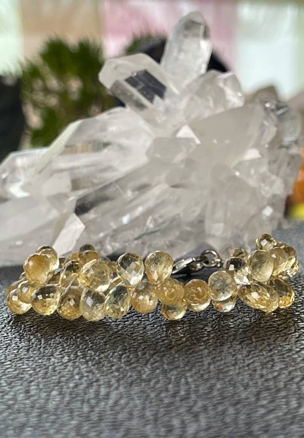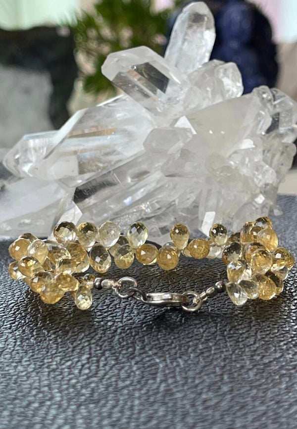 Armband met Golden Topaas edelstenen, druppel facet geslepen kralen met zilveren sluiting, mooie kwaliteit