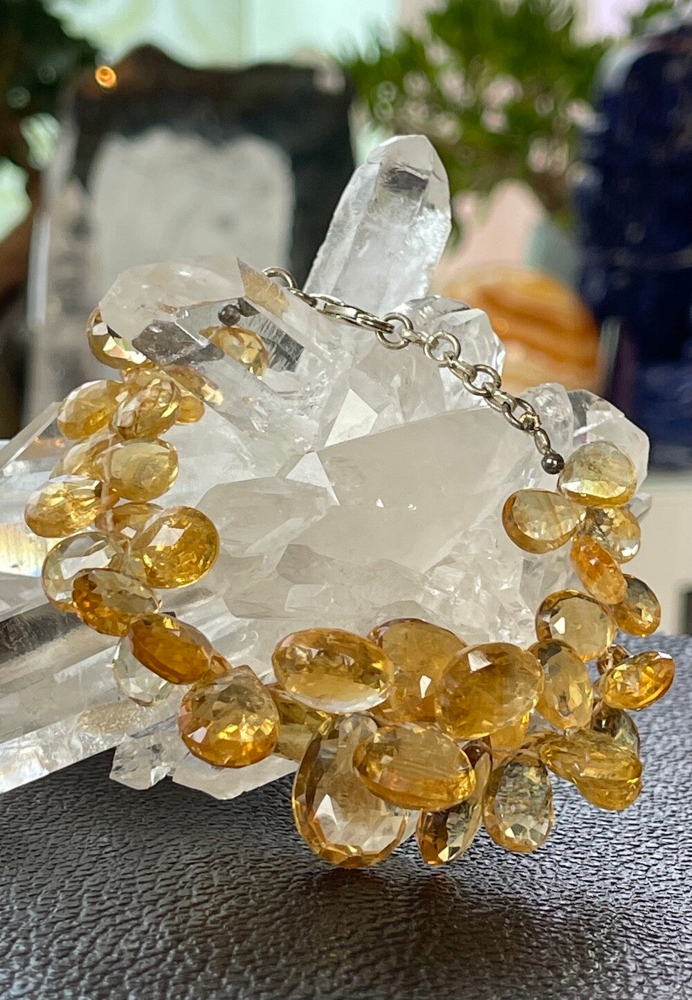 Armband met Citrien edelstenen, druppel facet geslepen kralen met zilveren sluiting, mooie kwaliteit, verstelbaar