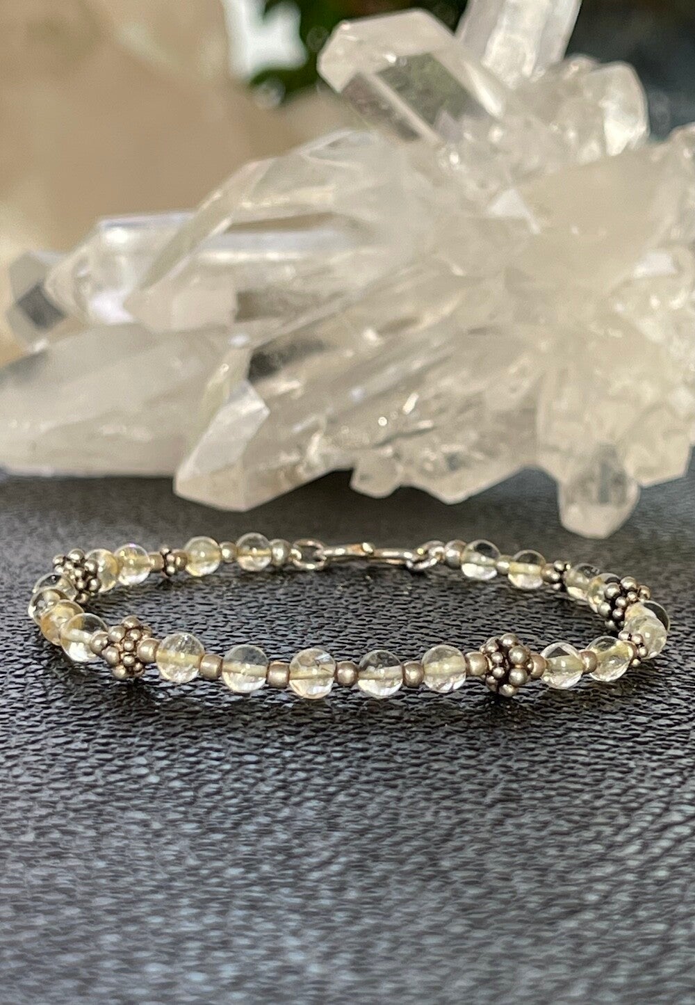 Armband met Gouden Topaas edelstenen, cabochon kralen met zilveren kralen ertussen en met zilveren sluiting