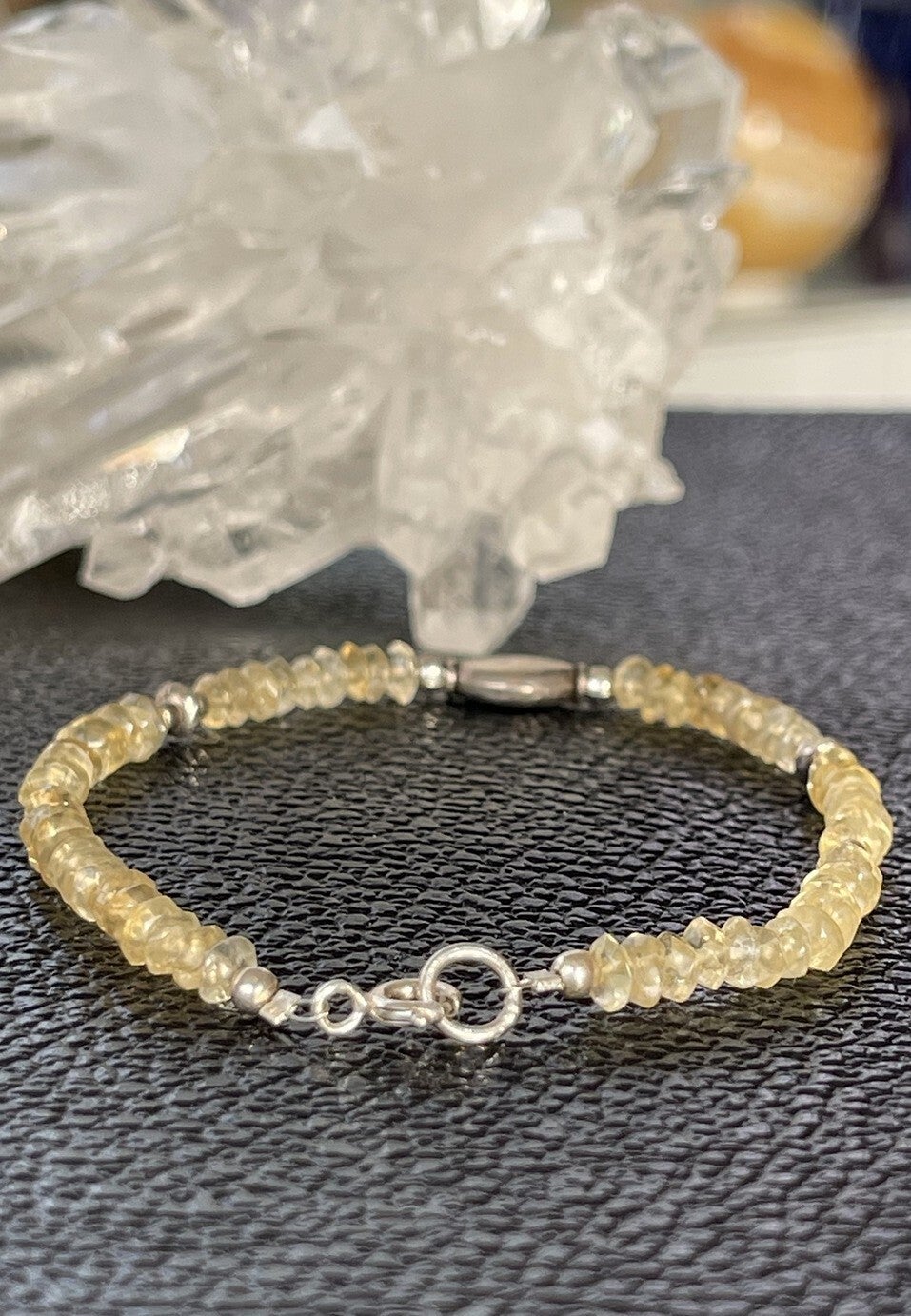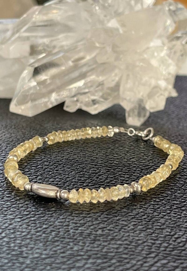 Armband met Gouden Topaas edelstenen, facet geslepen kralen met zilveren kralen ertussen en met zilveren sluiting