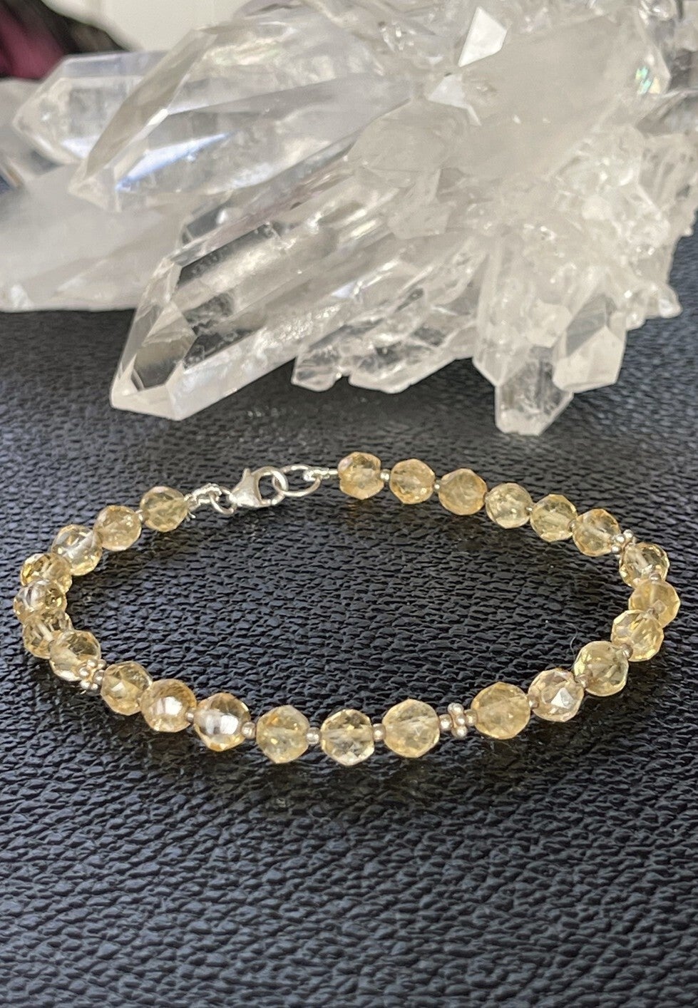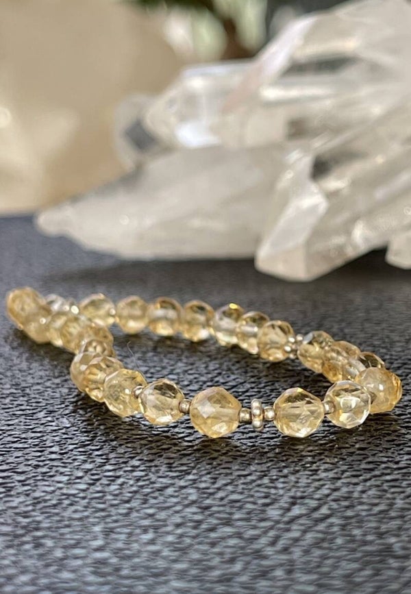 Armband met Gouden Topaas edelstenen, ronde facet geslepen kralen met zilveren kralen ertussen en met zilveren sluiting, mooie kwaliteit