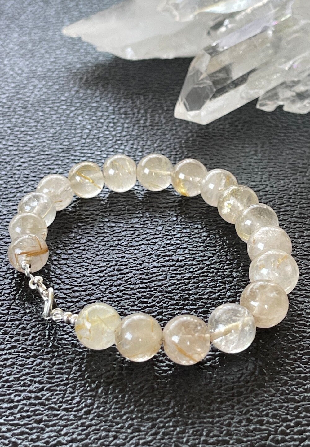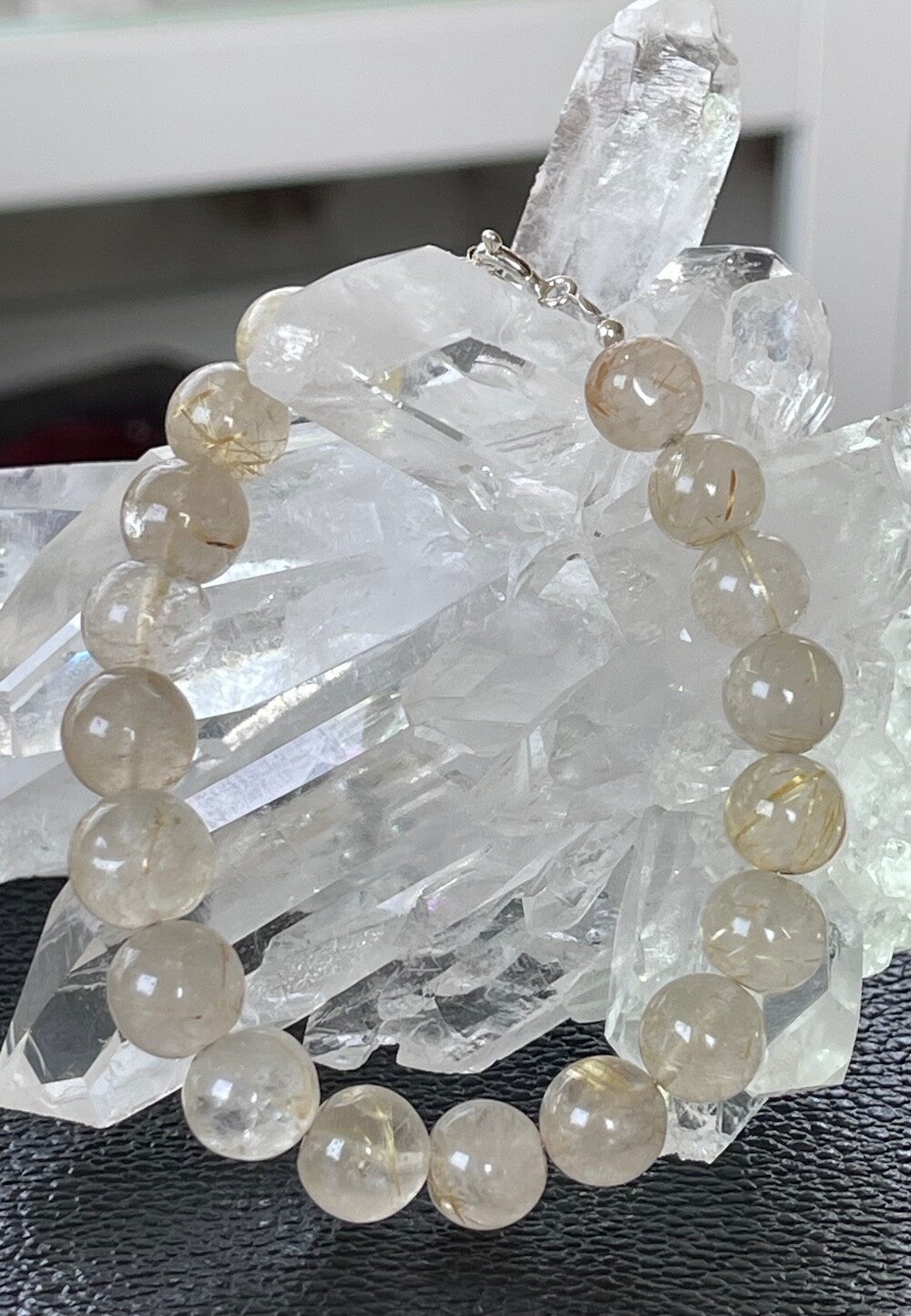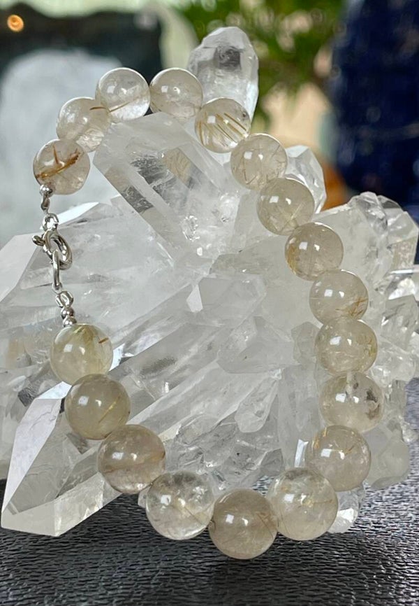 Armband met Gouden Rutielkwarts edelstenen, cabochon kralen met zilveren sluiting