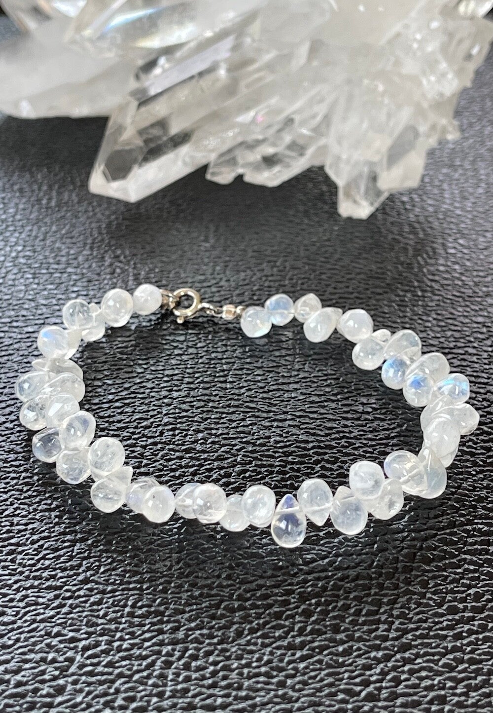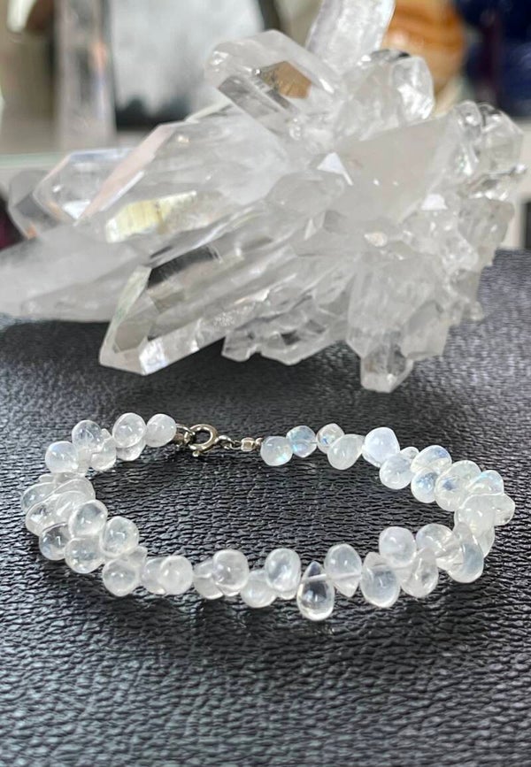 Armband met Regenboog Maansteen edelstenen, druppel cabochon met zilveren sluiting