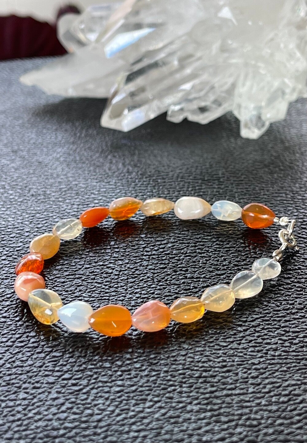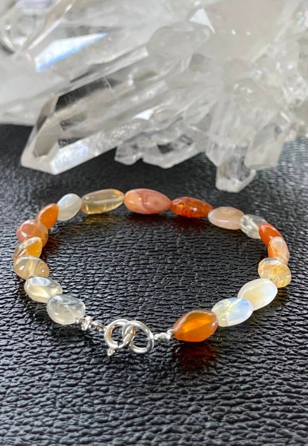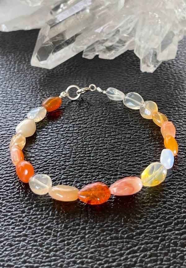 Armband met Vuur Opaal edelstenen uit Mexico, cabochon kralen met zilveren sluiting